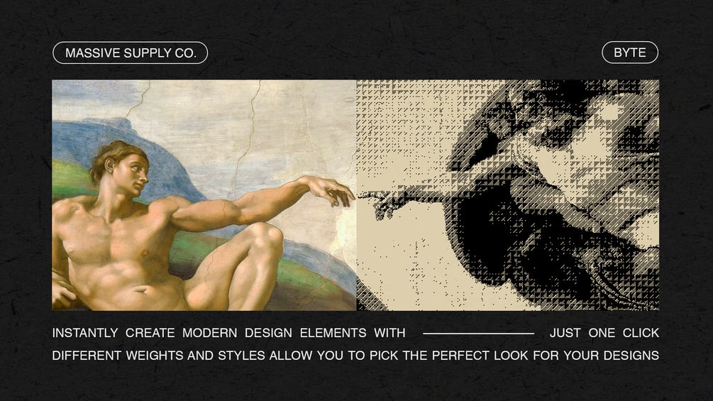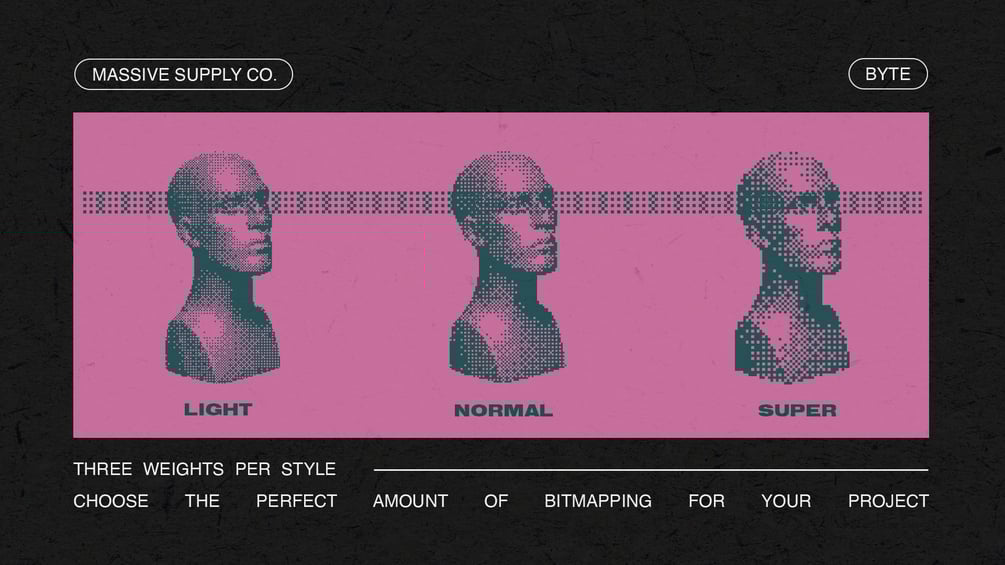 BYTE is a set of 14 actions for Photoshop to create stunning bitmap designs with just one click. Simply select the layer you want to apply the bitmap effect to and then run the action - that's it. BYTE is a powerful tool that any designer can use to make beautiful bitmap images.